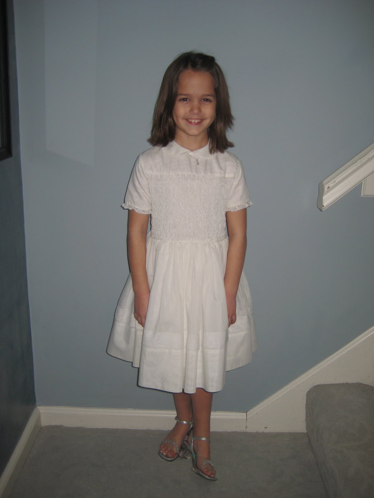 This is Claire's drawing for the cover of her programClaire turned 8 this past week. We decided to go to St. Louis for her baptism so her great-grandparents could attend. We had 34 people attend and Claire was related to all but 4 people. It was a great day!! Claire was able to wear the dress that I was baptized in and also my mom and sister. It fit her perfectly. After the baptism, we went to my mom's house for some yummy food!! It was great to be with all of our family.